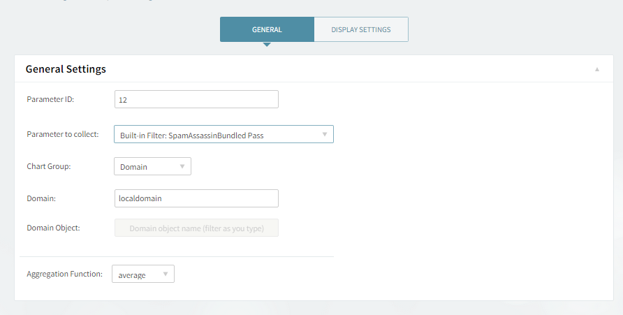 Within the "Parameters" section, click on the "Add chart counter", then select the SpamAssassinBundled "Passparameter" to collect.