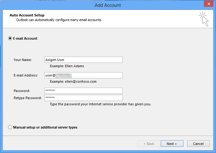 You can configure Auto-discovery in Axigen for Microsoft Outlook 2016 by simply following these steps: