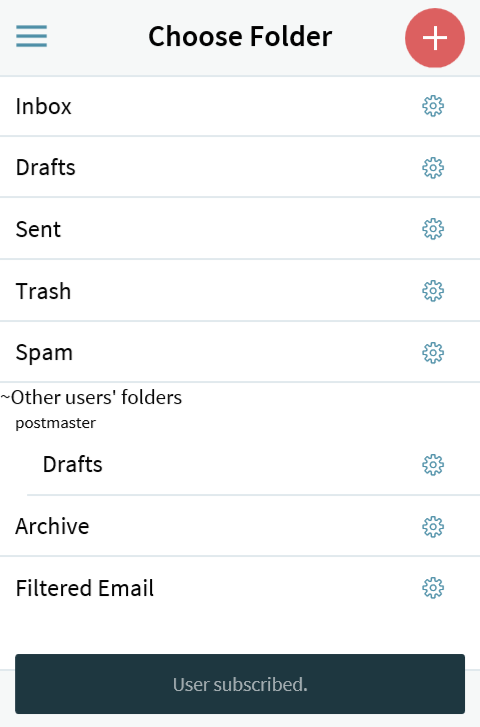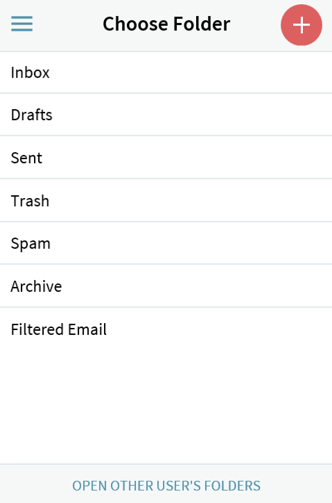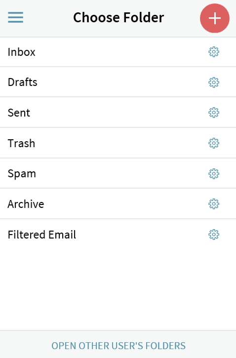 Accessing the "All email folders" link will open a page that displays all your personal email folders and any other user's folders that you may have previously opened. Below your default personal email folders you will find, in the folder tree, the "Other users' folders" entry.