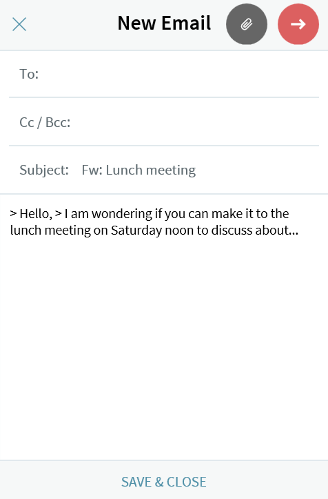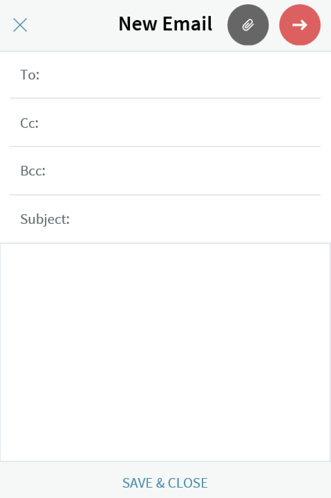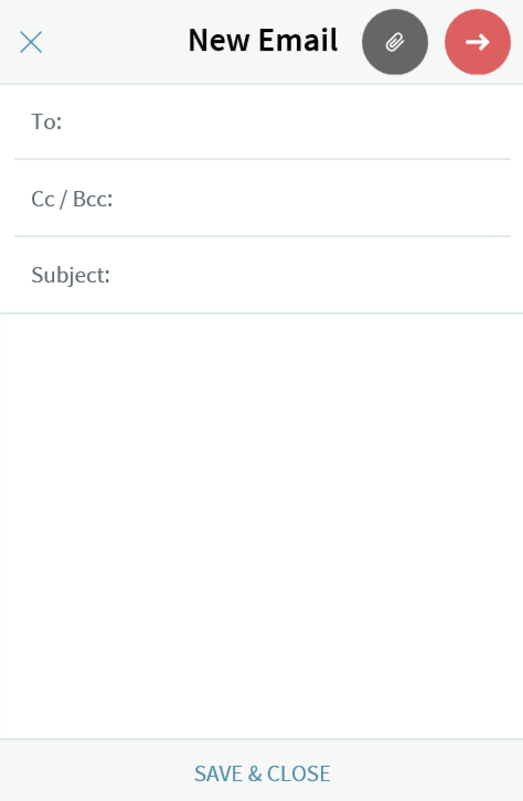 Click "Send" to send the email message, "Save & Close" to save a draft of the current message and resume its editing at a later time, or the "X" button to abandon and return to the section where you previously were;