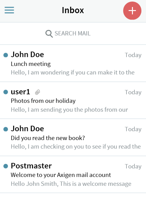 When the Mobile WebMail is enabled, Axigen performs automatic device detection and serves this interface for detected mobile phones.