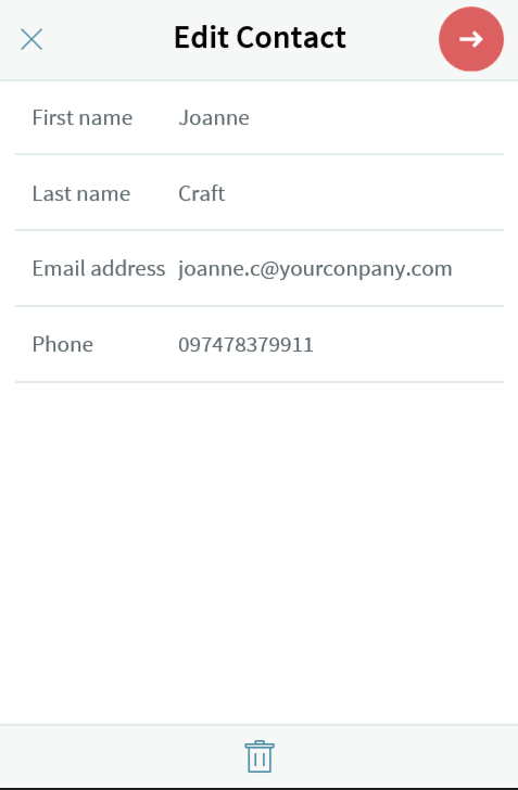 To view or edit details for a contact, tap on the contact name from the list, which will open the contact for editing.