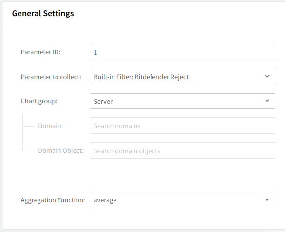 In the "General" tab, use the options under the General Settings section to specify the parameter ID, the parameters to be collected, the "Chart Group", as well as the "Aggregation Function" used in representing the values for the counter.
