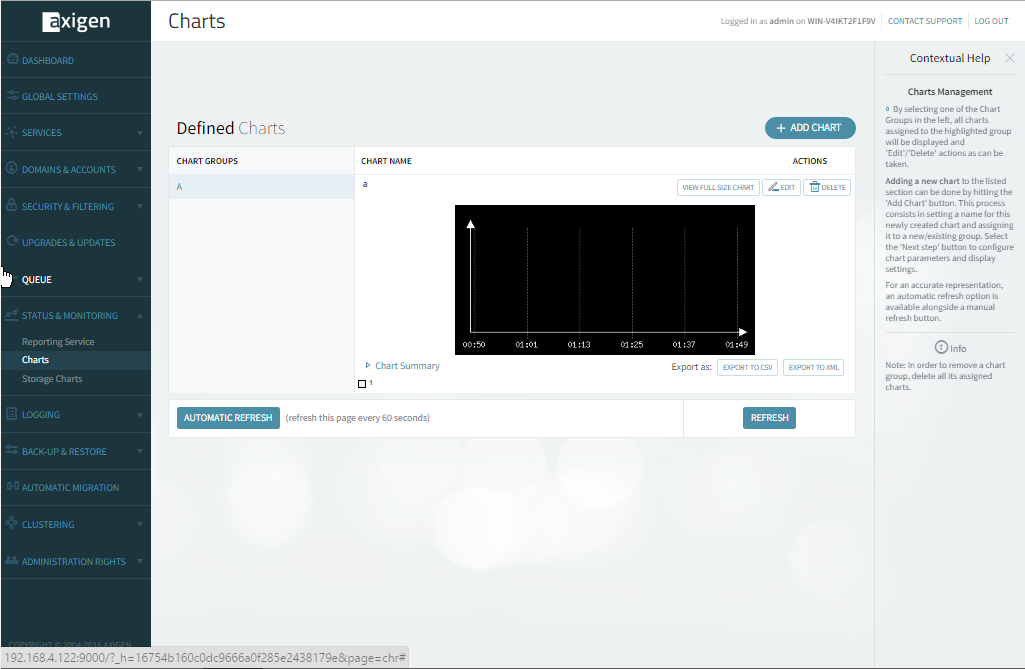 Now that the Reporting service is enabled, you can further navigate to the Status & Monitoring tab in WebAdmin and configure your first chart: