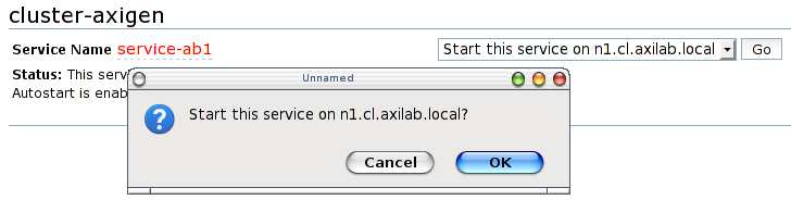 After the service will be created, you will be redirected to the service management page. In order to test the service startup, choose the option to start the service on the first preferred node, confirm the start action, and wait for it to finish. After its successful startup on the preferred node, test if the service is indeed relocatable to the hot stand-by node from the same failover domain. For this, you need to choose from the service management action drop-down list, the Relocate this service to <hot stand-by node name> option. Confirm the relocation and wait for the job to finish.