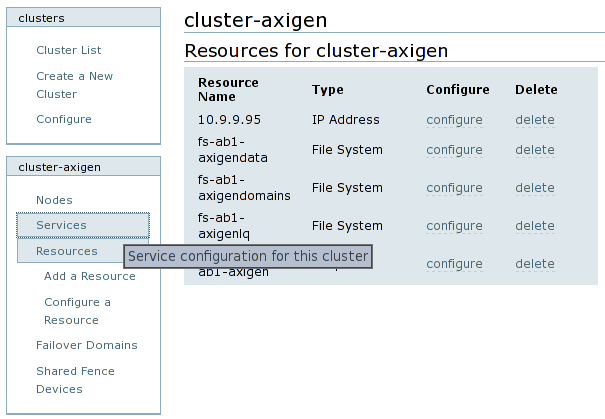For example, all file system resources which are part of the axib2 failover domain can be prefixed with fs-axib2- followed by a short descriptive text. In our example storage configuration we have named the file system resources for the axib1 failover domain as follows: