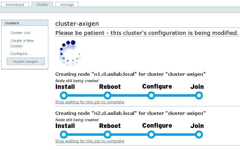 Cluster creation progress (Joined) |
