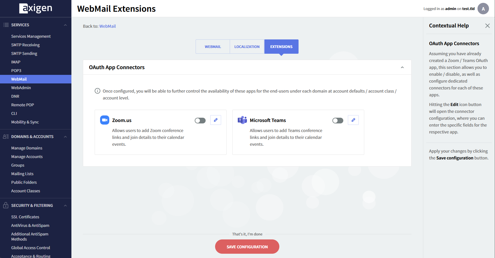 Now, the users in the domain “test.tld” are able to use the connector.
