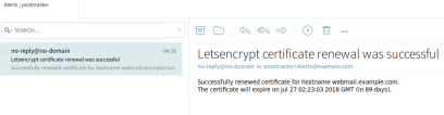Since certificate generation and renewal are operations that sometimes happen without sys admin intervention, Axigen uses email messages to notify the sys admin of progress regarding certificate operations.