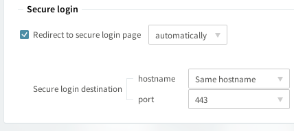 To redirect all insecure connections you may edit the non-SSL listener (that by default is set on port 80) and under the SSL Settings tab )→Secure login subcategory → Tick the "Redirect to secure login page" option box and click on "Save Configuration".