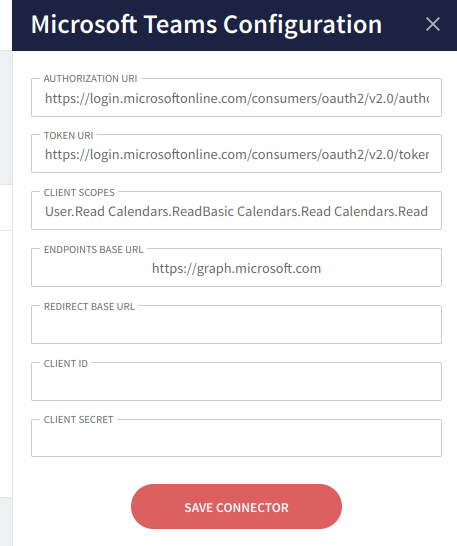 Similar to Zoom, the Microsoft Teams connector allows users to integrate Teams meeting links into calendar events. However, this functionality is available only after the Microsoft Teams connector has been configured and enabled. Configuration requires details from the Microsoft Azure portal, including the OAuth Client ID, Client Secret, and Redirect URI. Once the configuration is complete and the connector is enabled using the toggle switch, Teams integration becomes available for the WebMail Calendar meetings.