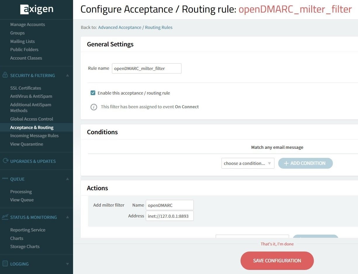 How to Integrate Axigen X3 with openDMARC via Milter V6