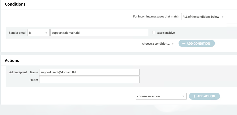 I do not have access to the source code of this custom app, and IMAP is not an option. Does anyone know of a way that I can use rules in “Acceptance and Routing” so that I can save a copy of and email sent using the account to the SENT folder of the account.