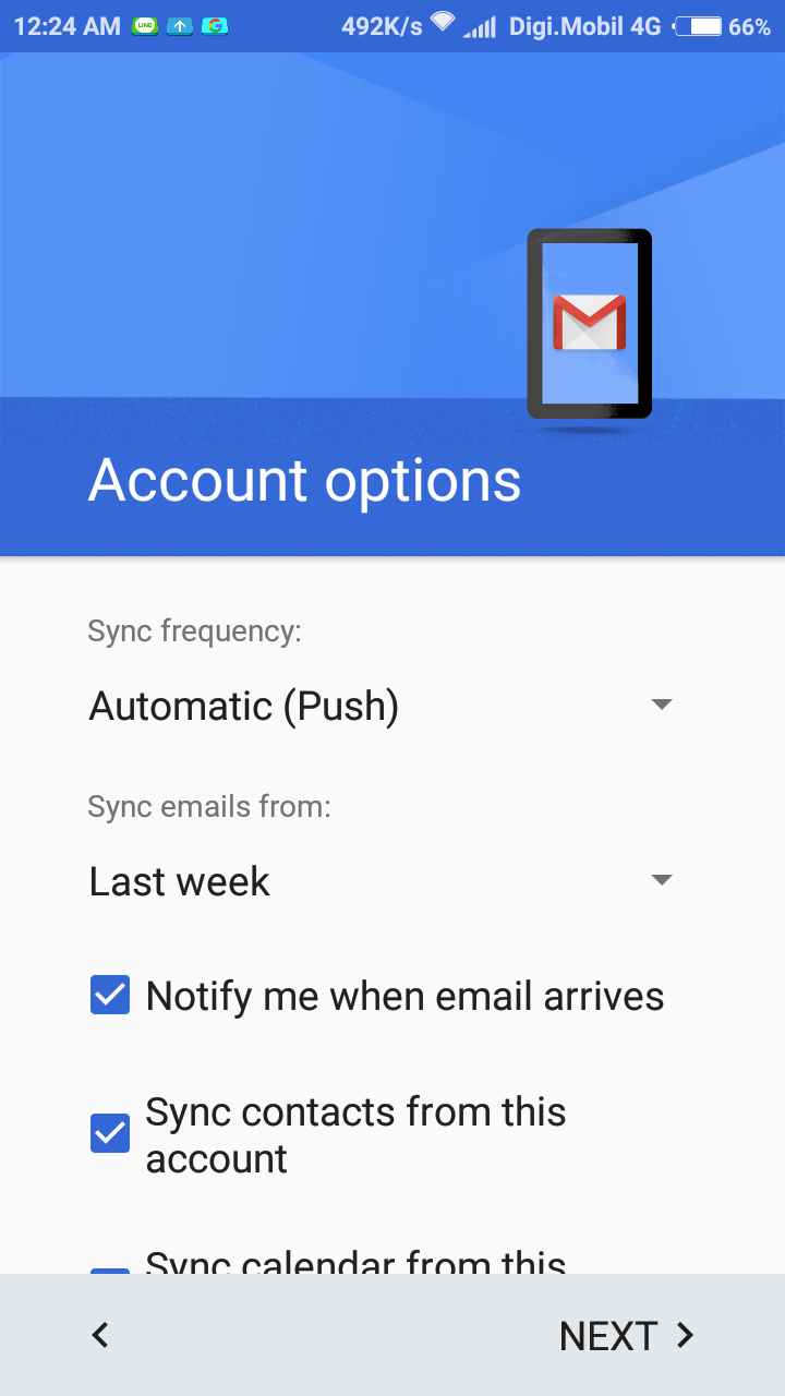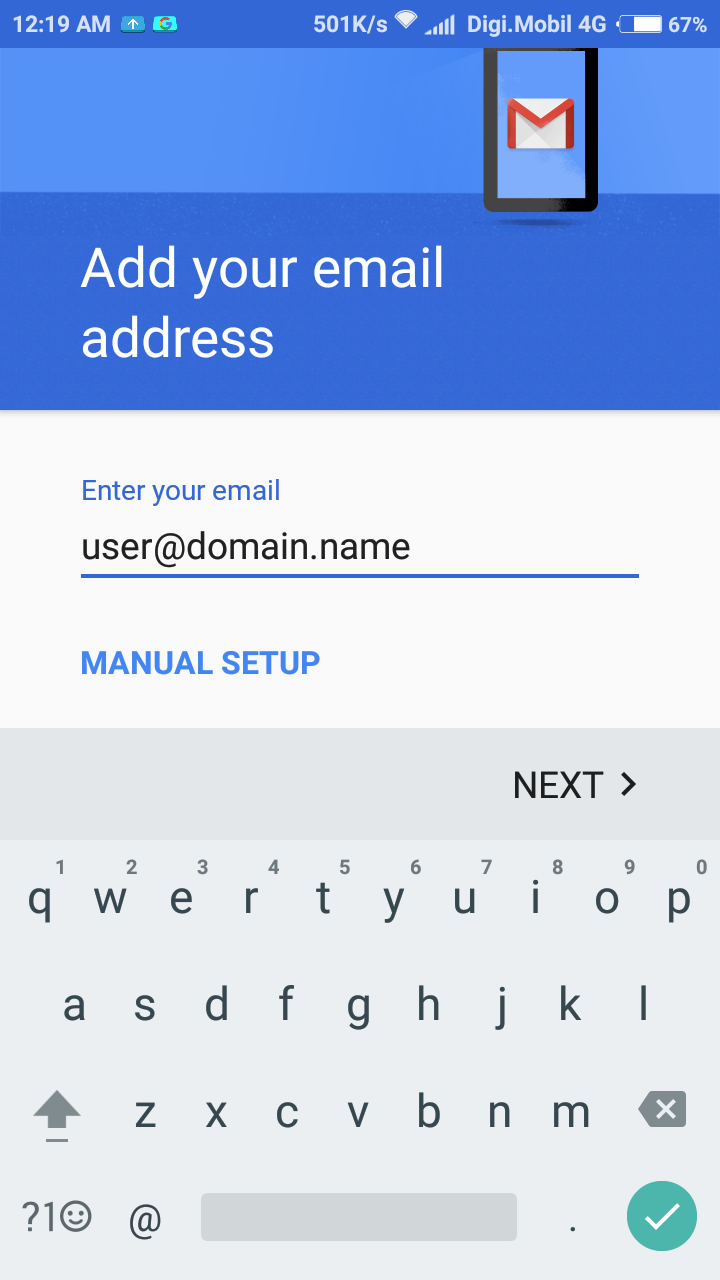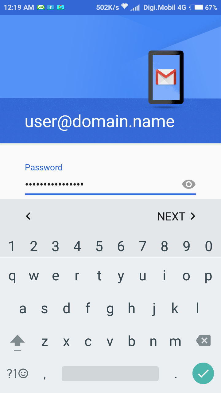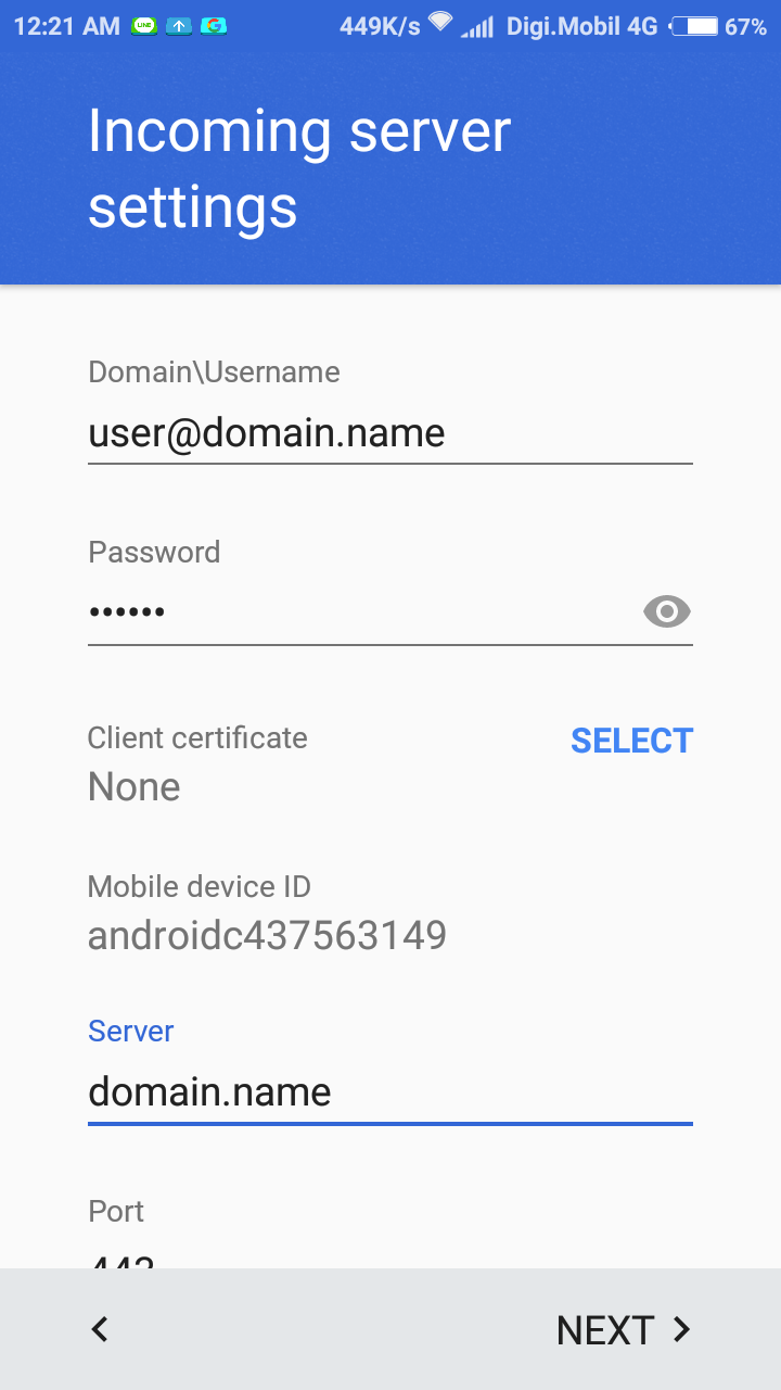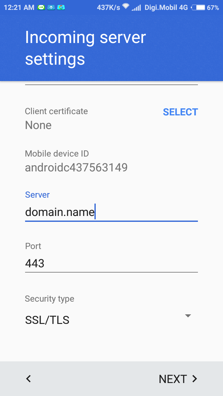 The Auto-discovery service will provide your mail server settings and you will only need to tap on "Next". |