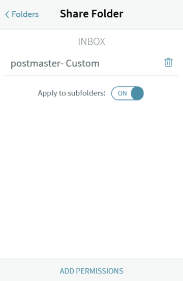 Custom permissions cannot be set from the mobile interface; to set custom permissions on a folder, you can use the full WebMail interfaces (Standard WebMail or Ajax WebMail).