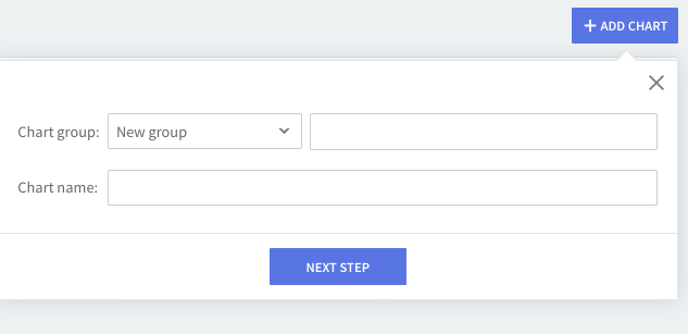 Use the drop-down menu to select one of the available chart groups or create a new one by filling in its name in the corresponding text box. This will help you categorize the created charts, thus providing a proper structure for chart organization. Then, specify the desired name for your chart an” The same pages will also appear when wishing to edit the parameters of an already-defined chart.
