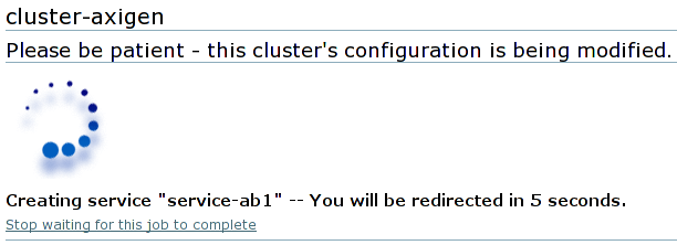 Pressing the Submit button will first ask for a service creation confirmation, and then automatically create the cluster service by modifying the cluster configuration.