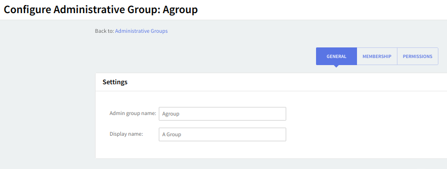 Whether creating a new administrative group or editing an already created one use the available text boxes under the "Settings" section to specify the "Administrative group name" and "Display name".