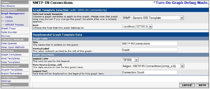 This concludes our article about Axigen's reporting service and its usage. Since Cacti deals with a complex process of creating graphs, in the next article we've included some graph customization tips.