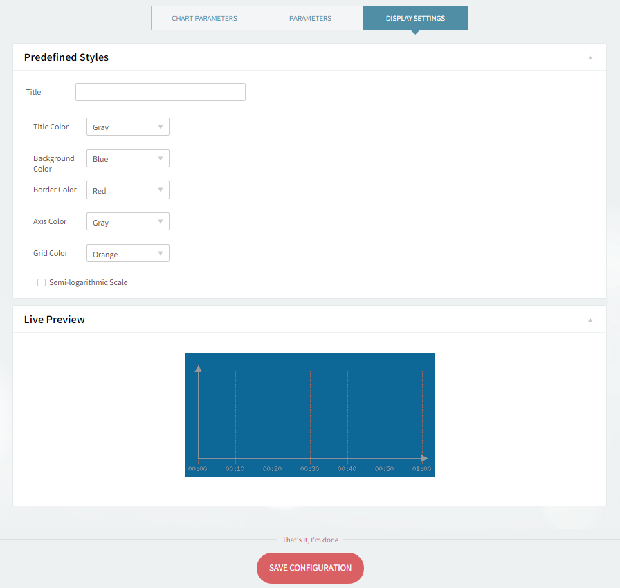 In the "Predefined Styles" section, you can use different chart types, filling and outlining colors for configuring the graph details of the chart.