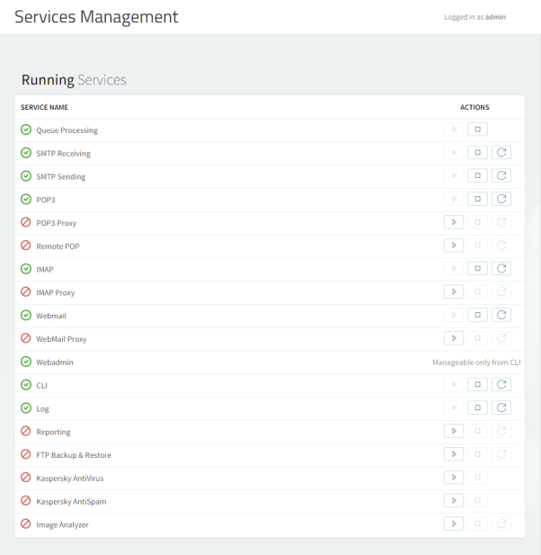 If a service is disabled on the server level, none of the users defined will be able to use the service. If the service is disabled on the domain level and enabled at the server level, then only the users defined on that particular domain will not be able to access the service. And finally, if the service is enabled on the server and domain levels and disabled on the user level, then only that particular user will not be able to use the service.