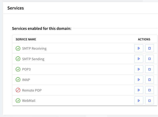 In the domain services list, you can enable or disable a service by using the respective buttons corresponding to that service's name.