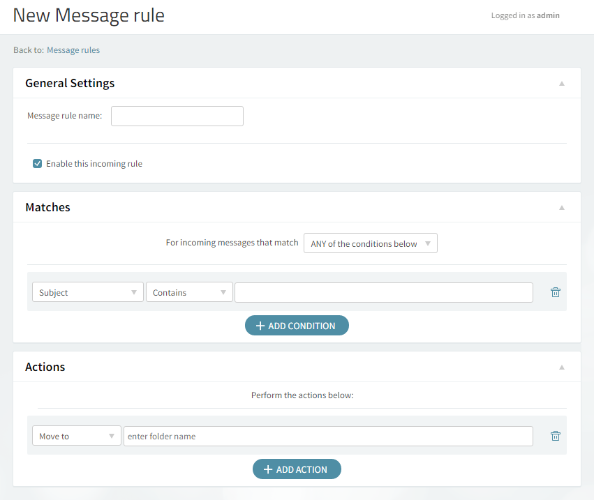 All message rules available in this section will run after any existing Server Level Rules and Domain Level Rules (common actions will be overridden).