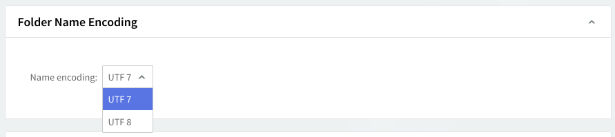 Users can choose between these options to set the character encoding for folder names. UTF-8 is generally the preferred option due to its compatibility with a wide range of software and systems, while UTF-7 may be chosen for legacy support or specific 7-bit encoding requirements.