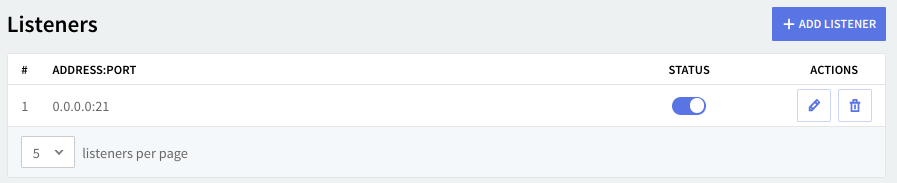 By default, the listener will be configured on 127.0.0.1 (localhost) and port 21, which is the default port for the FTP protocol.