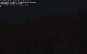 The Axigen license will be displayed using the "less" or "more" pager application, whichever is found on the system. To quit the pager application, after reading the license, the "q" key must be pressed. The license has to be accepted, in order to continue with installation, by typing "yes", when the wizard asks for it.