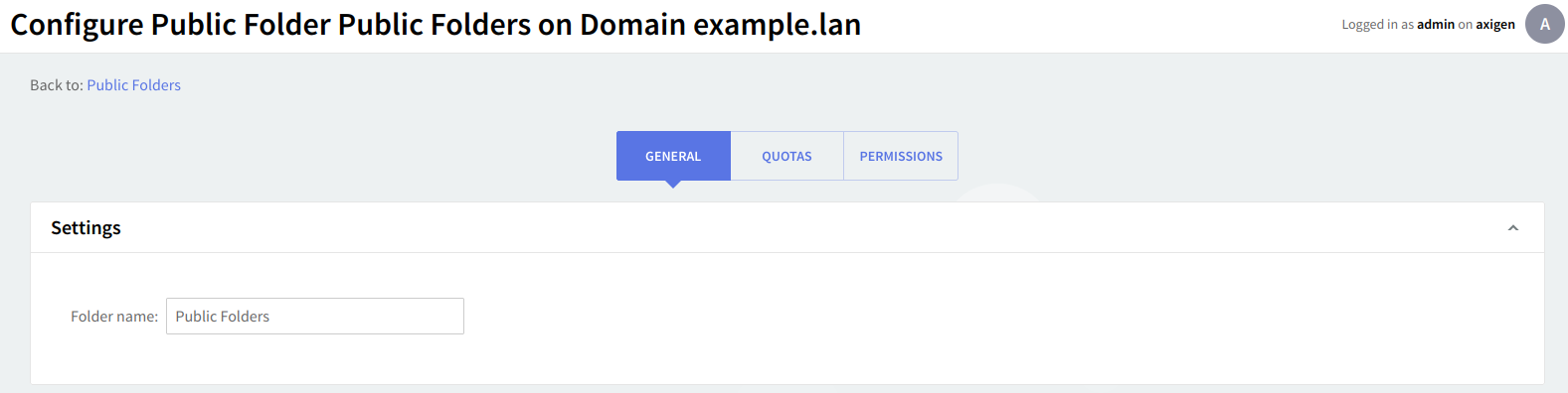 The "Public Folders" → "General" page allows you to begin the configuration of a public folder.
