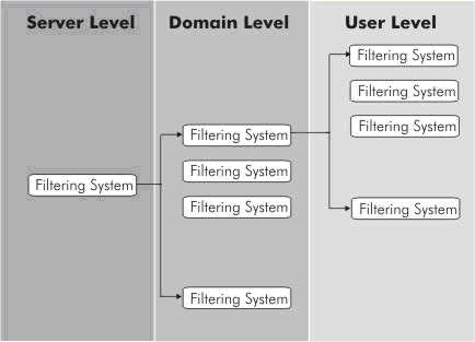 Thus, a typical filtering chain in Axigen will contain different types of filters, applied on different levels.