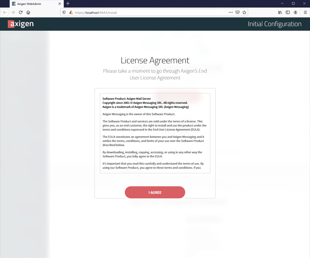 Note: This Web based Initial Configuration (Onboarding) is available starting with Axigen X3.