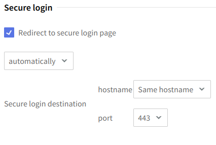 Here you can enable "Redirect to secure login page", which can be done either automatically or manually: