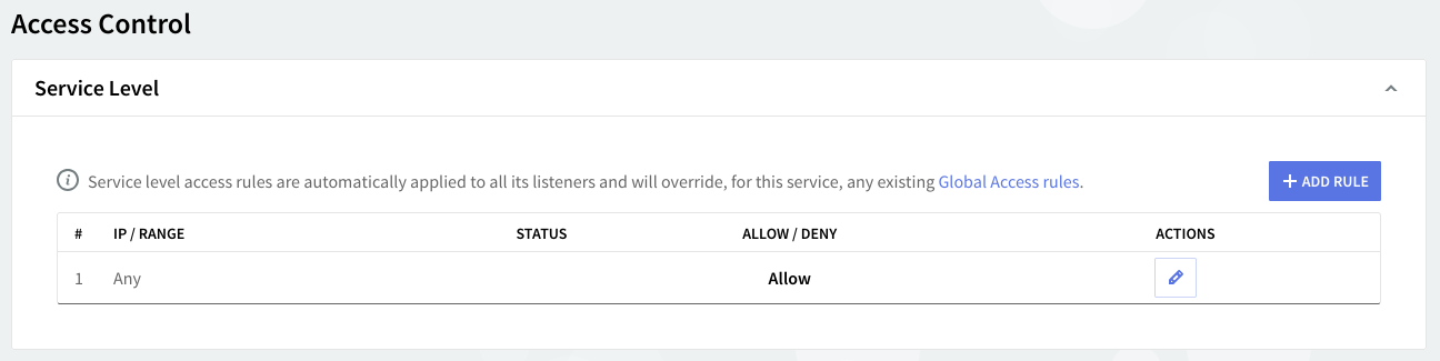 Access rules allow you to control connection to this service from specific Networks / IP Ranges / IPs.