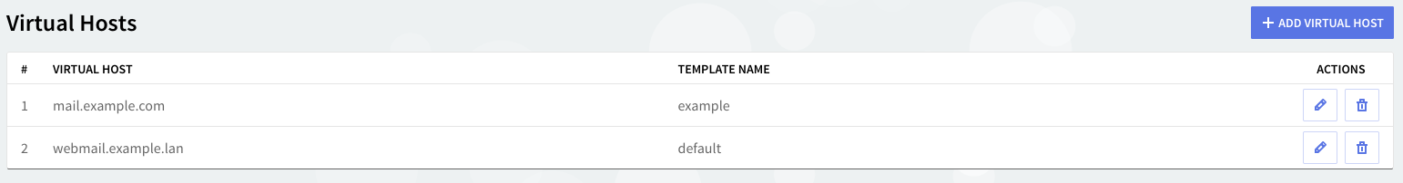 This section allows you to configure per-domain virtual hosts, similar to the virtual hosts feature of the Apache web server. In scenarios where multiple independent domains are hosted on the same Axigen server, this provides the option of accessing the WebMail service by entering the URL of the respective domain.