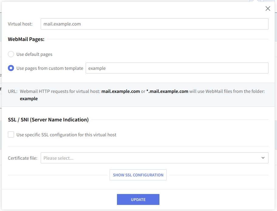 display customized WebMail templates for requests with specific virtual hosts in the URL (for example, you can add